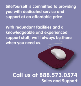 SiteYourself is a New York based hosting services provider. We offer hosting solutions ranging from site and server hosting to Customer Relationship Management and Site Management.
